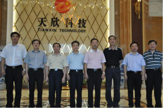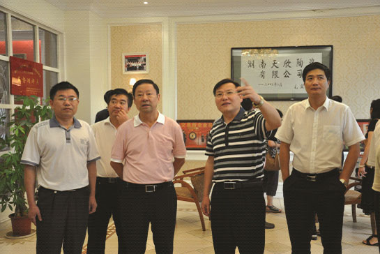 ▲岳陽(yáng)市人民政府市長(zhǎng)盛榮華等領(lǐng)導(dǎo)陪同老書記儲(chǔ)波視察湖南天欣科技股份有限公司。